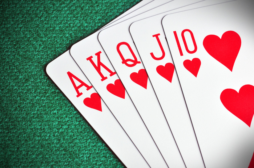 - رويال فلاش (Royal Flush): أعلى يد ممكنة، وتحتوي على الأوراق A, K, Q, J, 10 من نفس النوع.